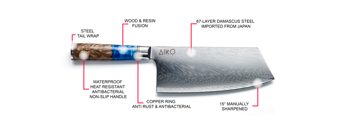 The Aiko Blue (あいこ, アイコ) Damascus Series Knives: