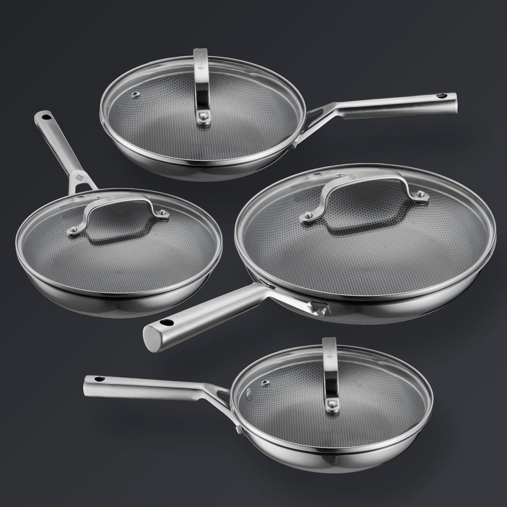 Hive Hybrid™ 8-Piece Pan & Lid Set (4 Frying Pans + 4 Matching Lids)