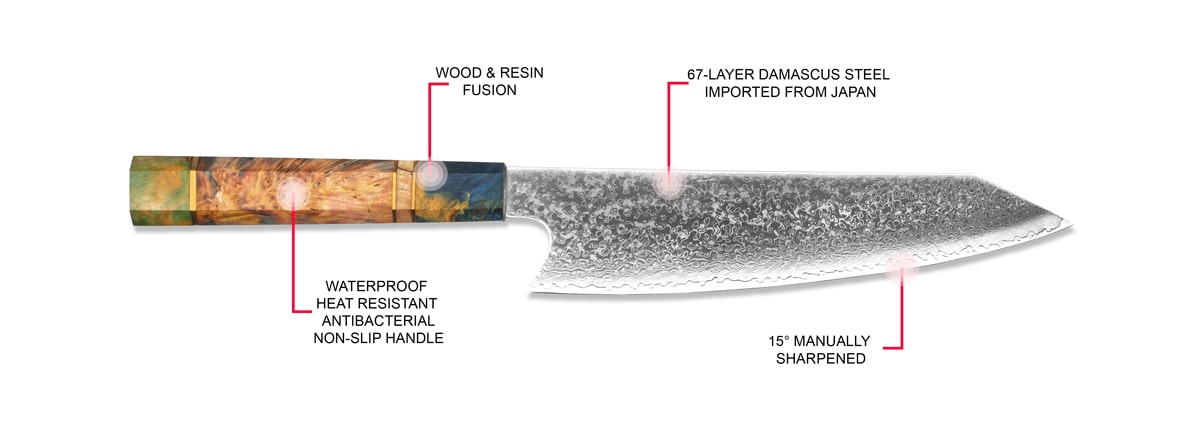 - 67 layers of stainless steel for strength, stain resistance, and longevity.